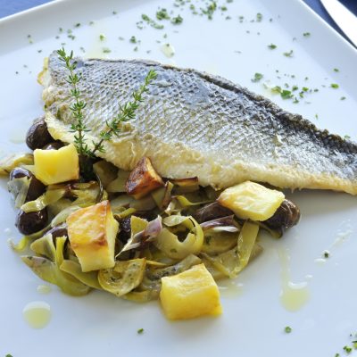(GF) Fresh national fish fillet with potatoes, Taggiasca olives and...