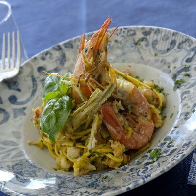 Pâtes fraîches, gambas, crevettes, artichauts*
